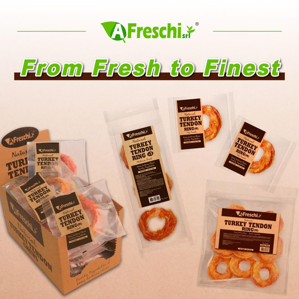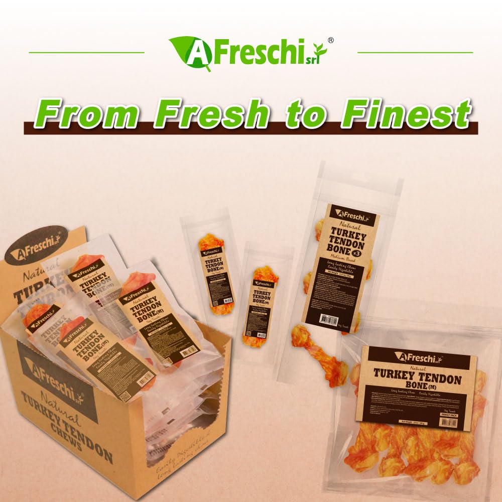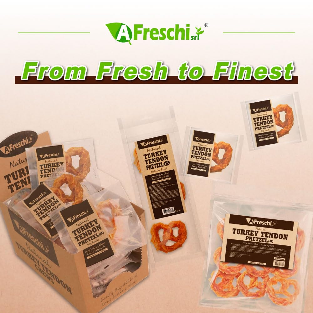 AFreschi Turkey Tendons for Dogs, USA-Sourced, Healthy Dog Treats, Rawhide-Free Puppy Chews, Long Lasting, All Natural, Hypoallergenic Dog Treats for Medium Breeds, 6 Count Pack Braid (M)