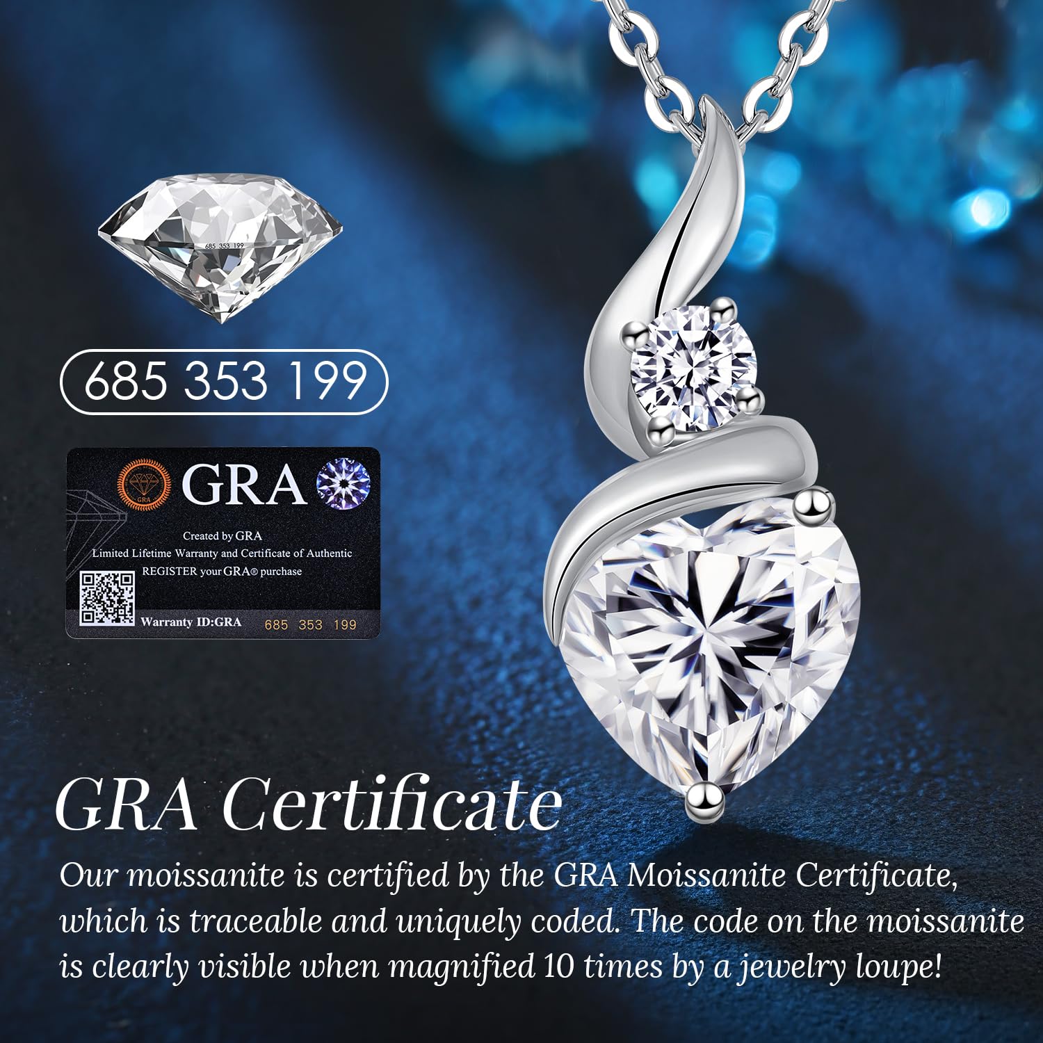 - 【Certified Moissanite】The heart necklaces for women features moissanite that comes with a certification of authenticity, which is traceable and with a unique code, ensuring their genuineness. The necklace measures 18 inches with an additional 2-inch extension for optimal comfort, and it features a lobster clasp for easy wearing