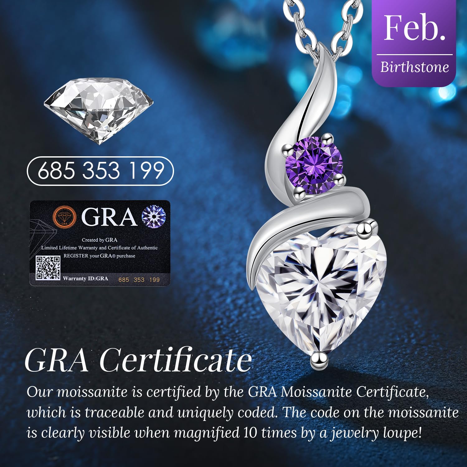 ANDSO Moissanite Heart Pendant Necklaces for Women, 925 Sterling Silver Necklace with Birthstone, Ideal Anniversary Present or Birthday Christmas Valentine Jewelry Gifts for Mom Wife Her Girlfriend