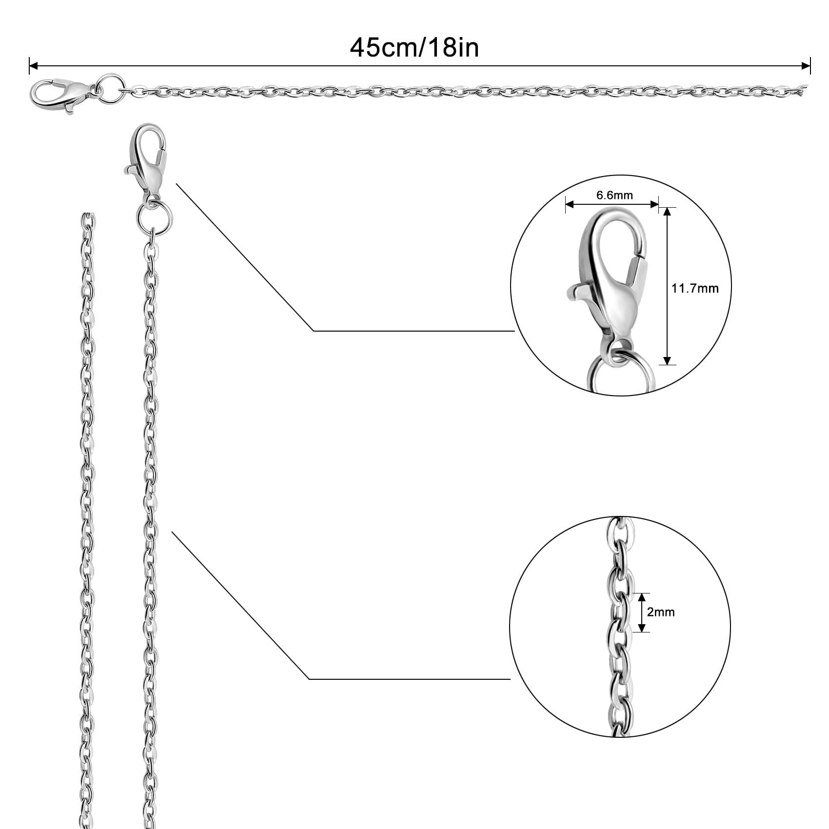 - Package Included:24 pack 18inches 2mm necklace chains with lobster clasps,easy to put on and take off, convenient to wear,great for charm necklace jewelry making.