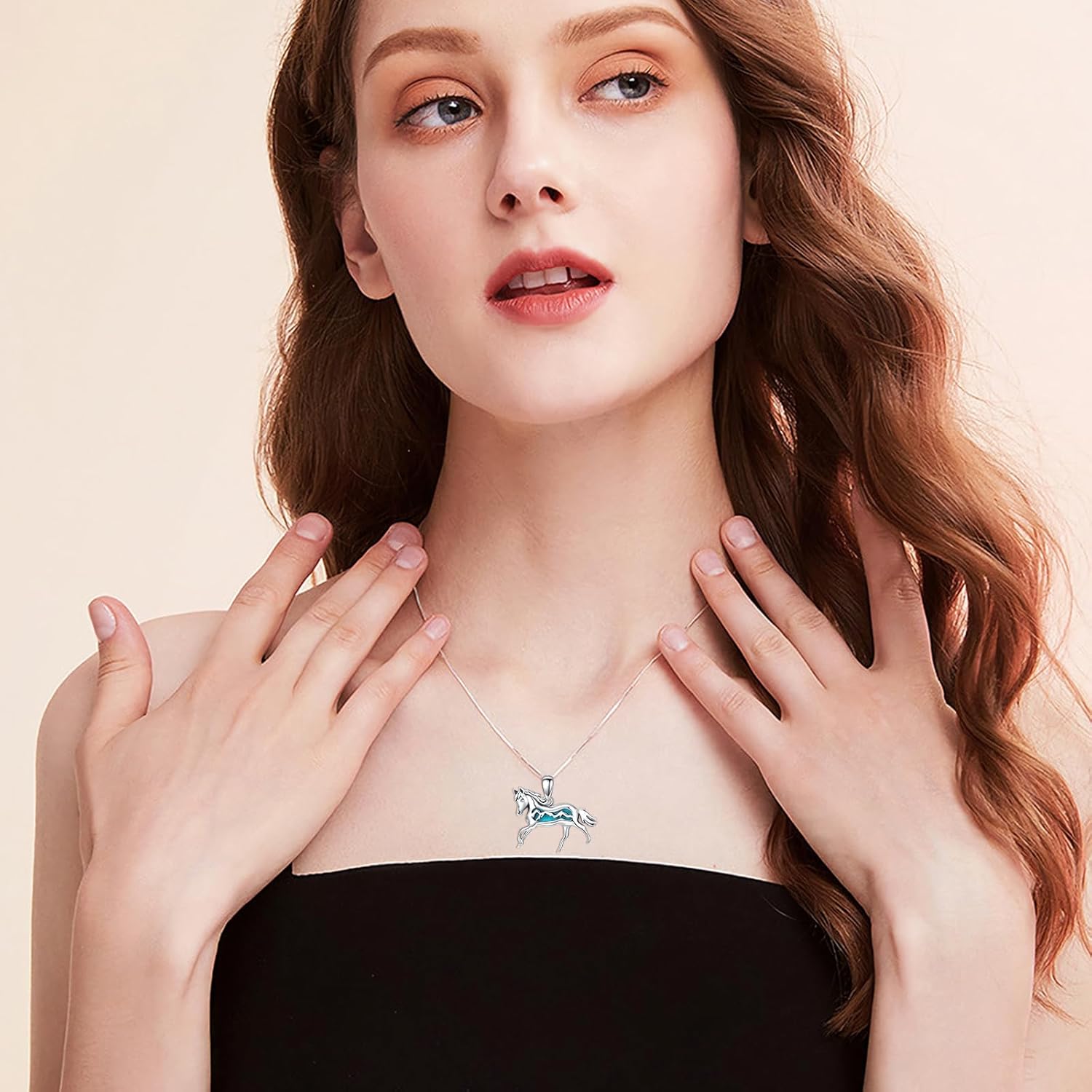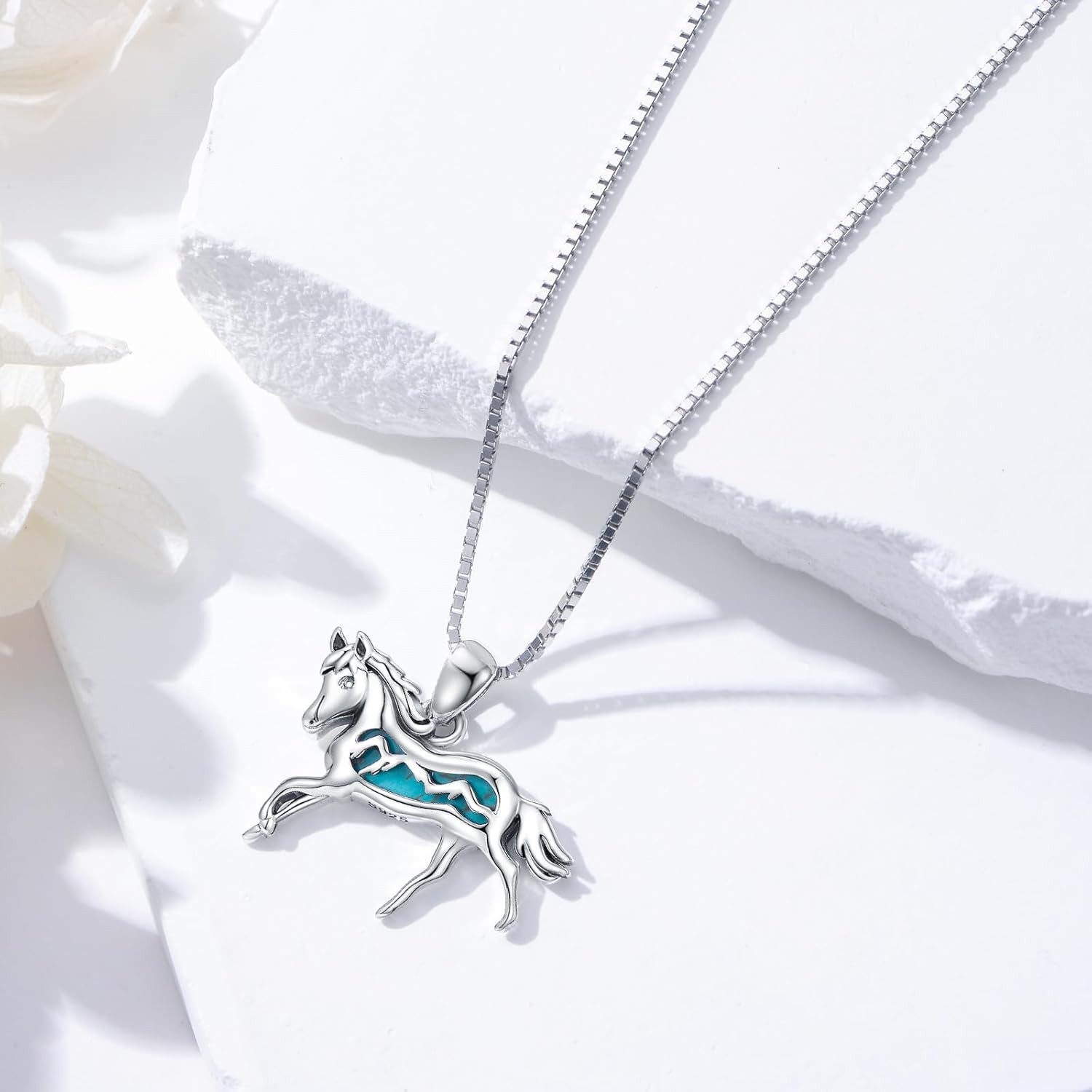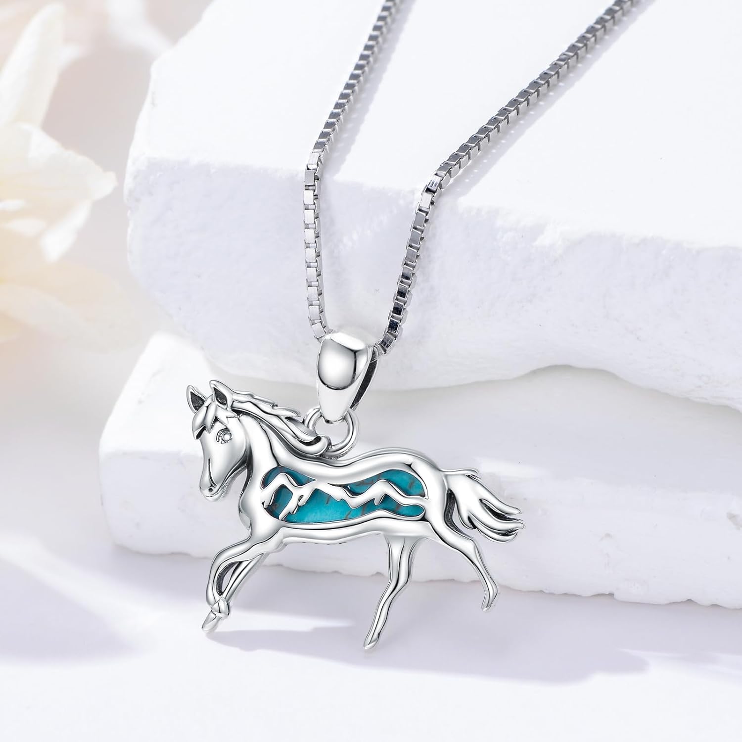 Natural Turquoise Horse Necklace for Women 925 Sterling Silver Running Horse Pendant Necklaces Animal Horse Charm Lucky Horse Jewelry Birthday Gift for Mom Wife