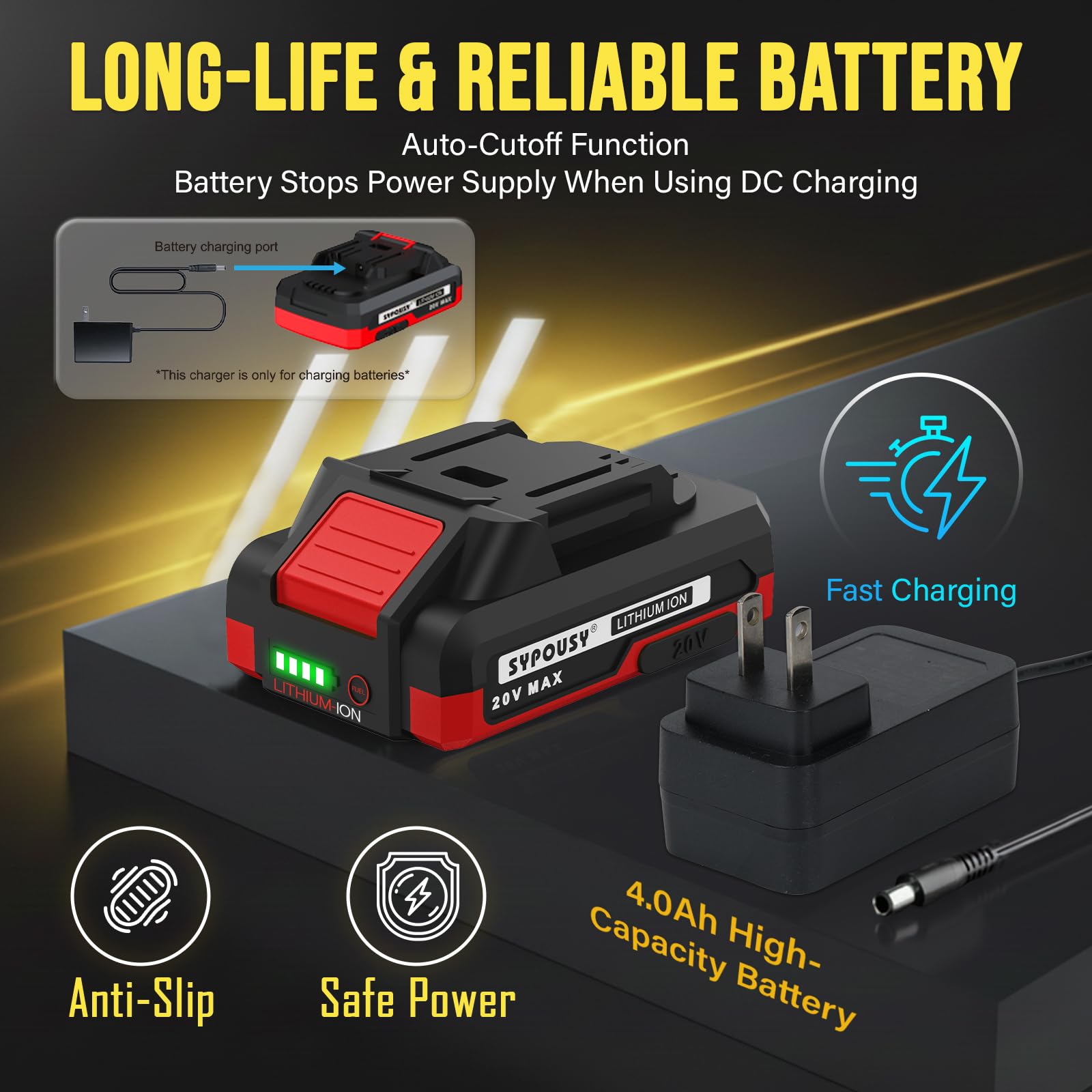 - Dual Power Supply for Anytime Use: Powered by a 20V 4.0Ah high-capacity rechargeable battery or a 12V DC car outlet, this inflator works wherever you are. Switch to corded mode when the battery runs low — no downtime, no limits. Ideal for emergencies, travel, and long road trips.