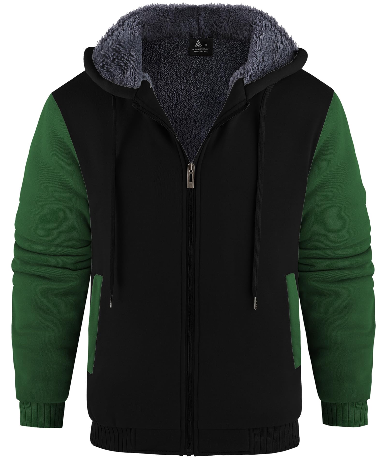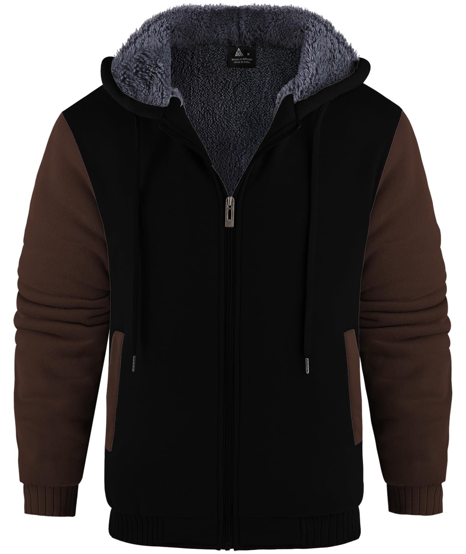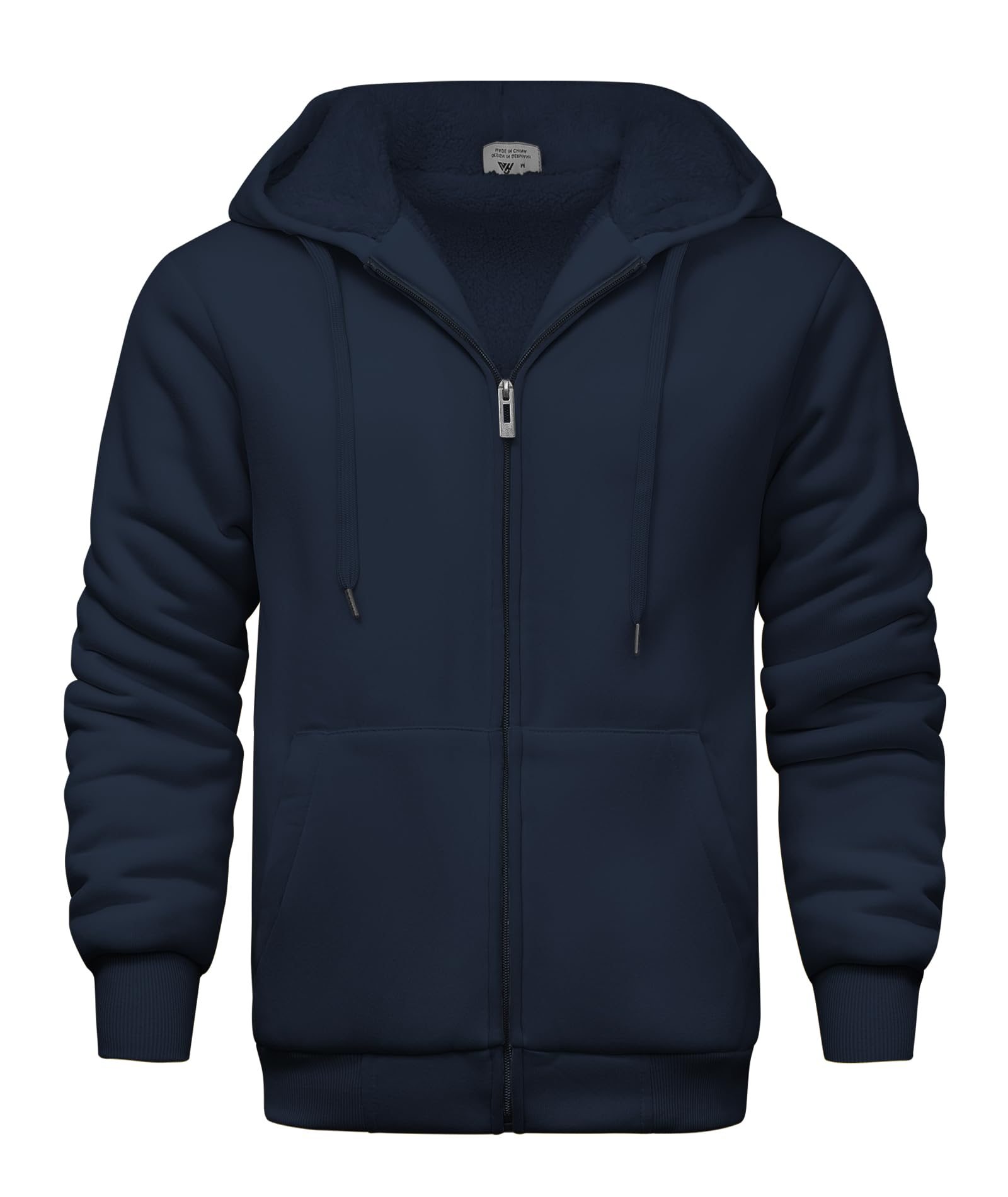 V VALANCH Men Hoodies Zip Up Sherpa Lined Sweatshirts Heavyweight Thick Warm Fleece Winter Jacket