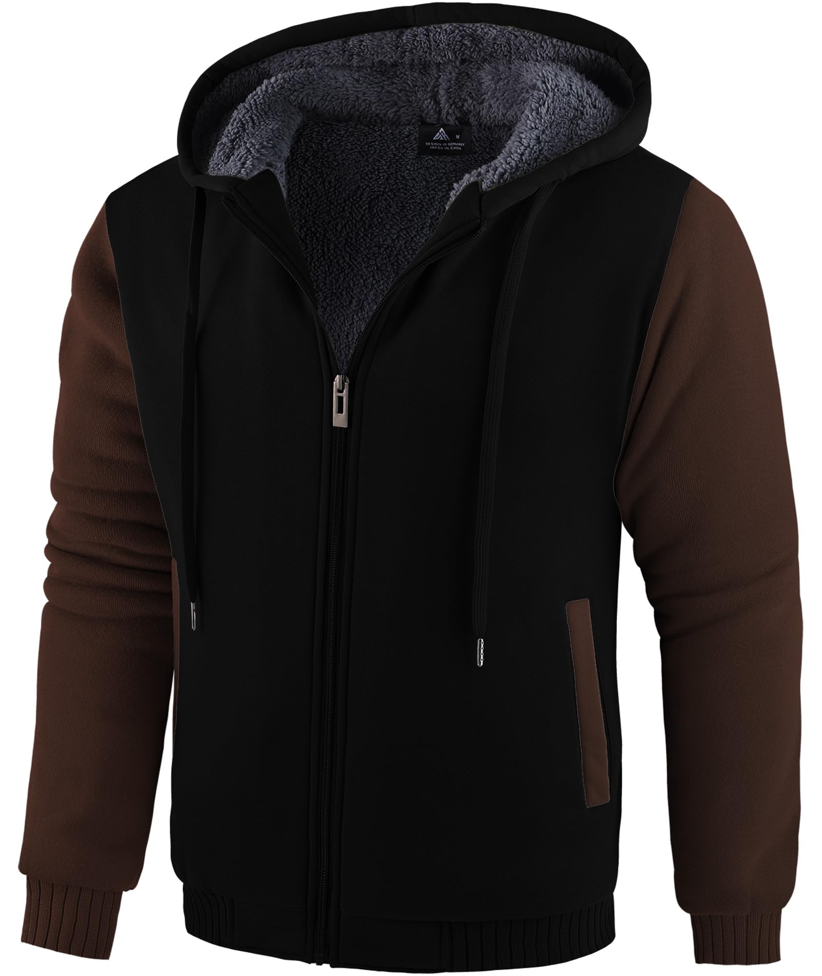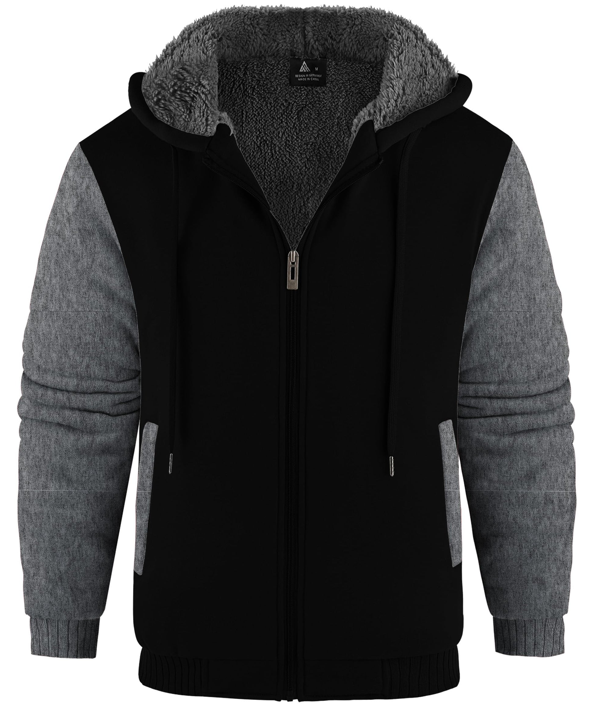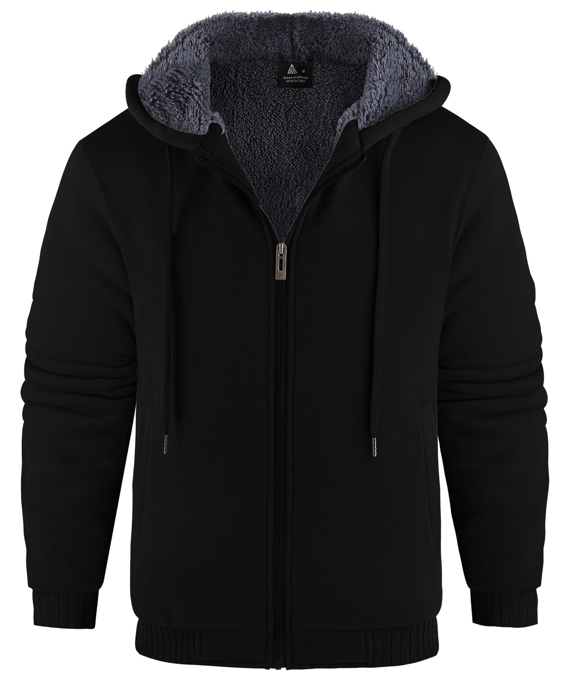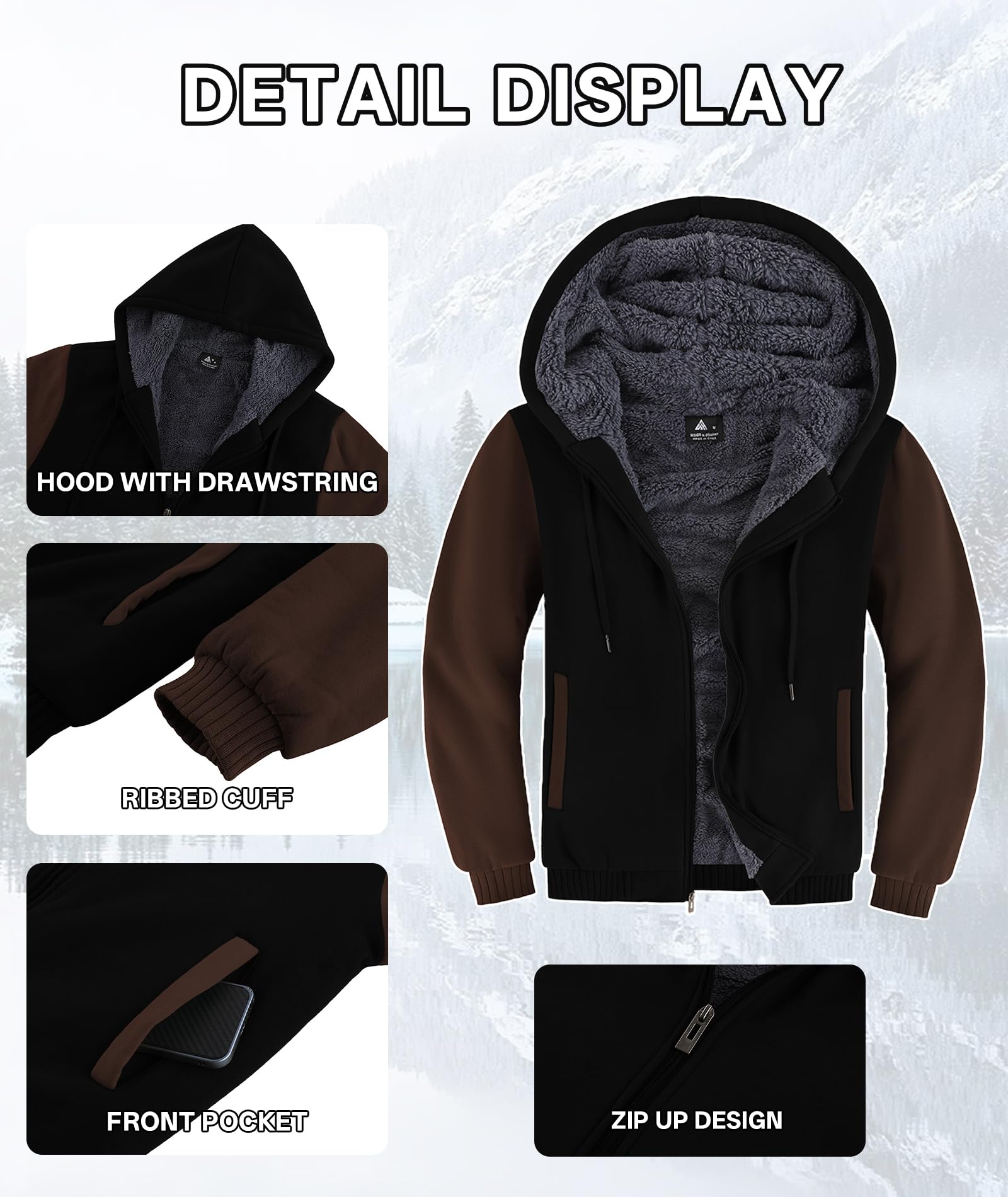V VALANCH Men Hoodies Zip Up Sherpa Lined Sweatshirts Heavyweight Thick Warm Fleece Winter Jacket