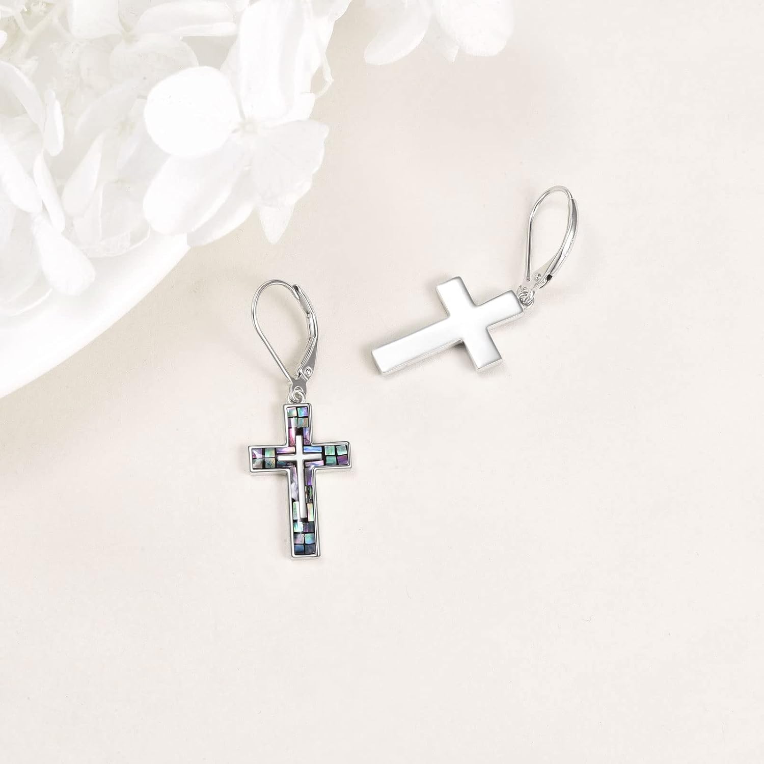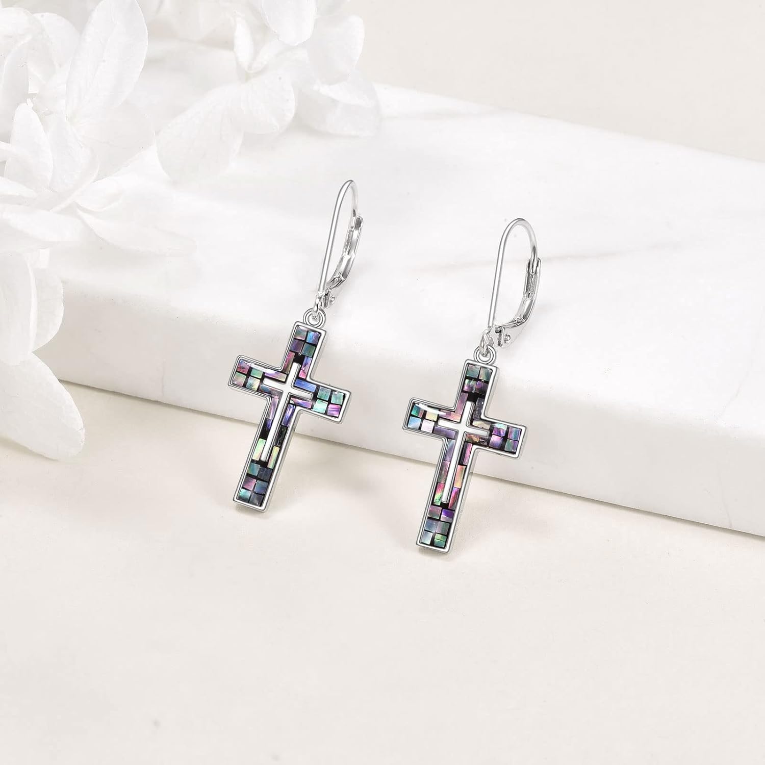 ❤DESIGN IDEAL❤: This unique cross earrings is simple and elegant, fits for any situation as daily wearing, home and office. Every small piece of abalone shell was stick on the cross by the senior craftsman, each cross is unique, different from each other. This cross necklace will be a perfect gifts for anyone you loved or yourself.