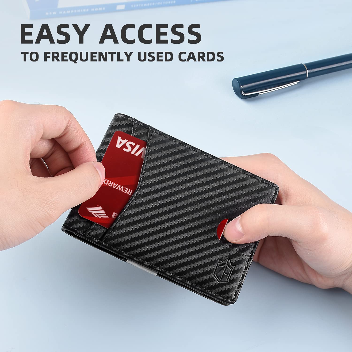 - SLIM & PRACTICAL DESIGN - This men's wallet boasts a sleek 4.4 x 3.2 x 0.47-inch profile, featuring 12 card slots, an ID window, and an interior money clip that securely holds up to 15 bills