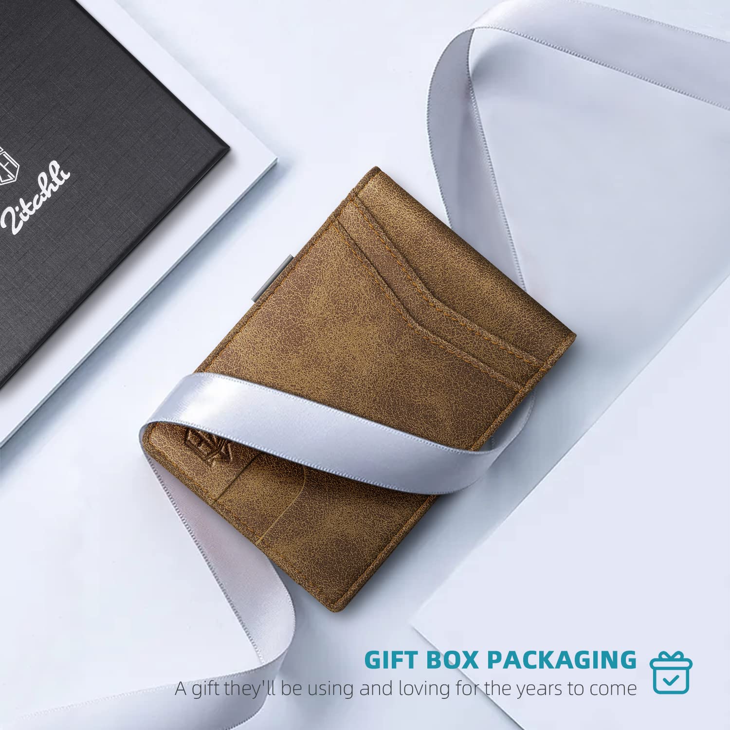 Zitahli Money Clip Wallets for Men,Slim Bifold Wallet 10-12 Cards, Mens Leather Wallet with ID Window,RFID Blocking Thin Minimalist Credit Card Holder,Gifts for Him